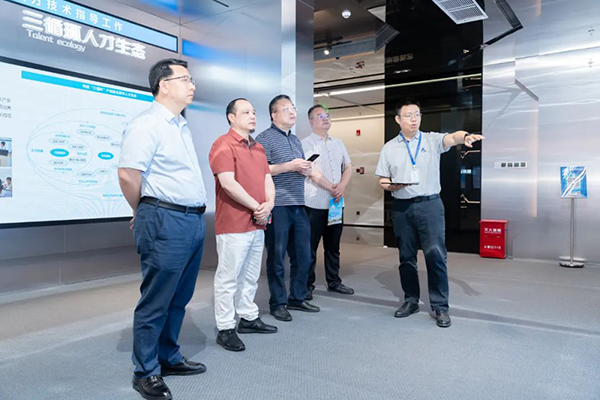 5月8日,湖南九嶷职业技术学院副院长唐红星,经济管理系主任唐琳斌,招生就业指导处科长李金诚,教务处主任林常君等领导一行莅临upay钱包官网技术总部考察研讨。upay钱包官网技术执行副总裁刘铭皓、湖南校企合作总监毕磊、人工智能产品部经理庄森、解决方案经理胡志文热情接待。双方围绕共建信创产业学院相关合作事宜展开探讨。