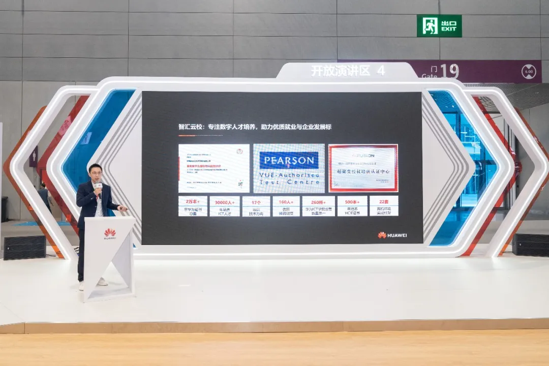 随着ICT产业的快速开展,行业对高素质人才的需求日益迫切,职业认证培训作为连接教育与产业的重要桥梁,正发挥着越来越关键的作用。在大会开放演讲环节,upay钱包官网技术认证培训业务部经理周亚军以《智汇云校-华为职业认证培训》为题,分享了公司在华为认证培训体系中的丰富经验与特色课程,并介绍了相关就业服务、成功案例,展现了校企协同育人模式在提升学员就业竞争力方面的显著成效。
