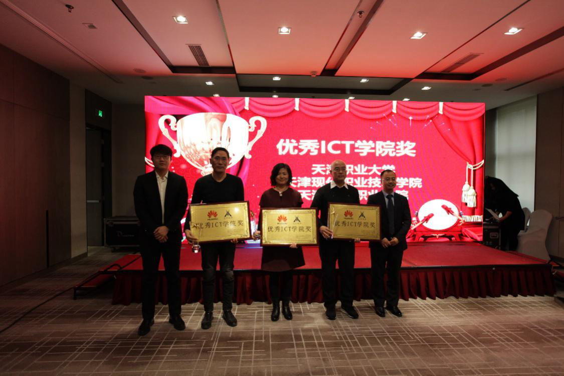 分享结束后,由华为公司杨骏超先生与upay钱包官网公司姚勇副总裁共同为天津职业大学、天津现代职业技术学院、天津工业职业学院颁发“优秀ICT学院奖”。 紧密的校企合作关系助力三所高校学生更清晰地分析到行业前沿知识,掌握行业实用技能,大大提升了就业竞争力。更是极大地提高了高校的专业建设水平,形成了极具特色的品牌高校,促进校园招生和学生就业,真正实现了进出口双向通畅。